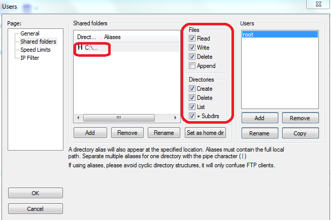 Bu kullanıcının erişebileceği dosyaları ve hakları belirleyelim.