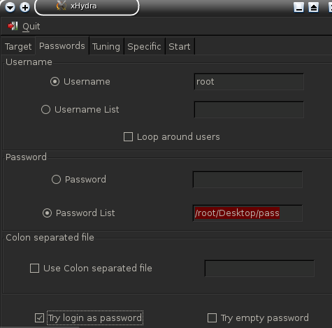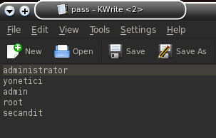 Öncelikle bir şifre listesini oluşturalım. Bu senaryomuzda kullanıcı adının ‘root’ olarak bilindiğini varsayalım. Bu yüzden kullanıcılar için ayrı bir liste oluşturulmayacaktır.